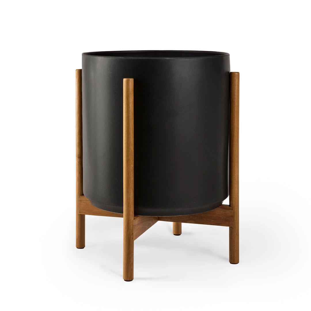 Super Simple BLACK PLANTERS WITH TEAK BASE DECOR