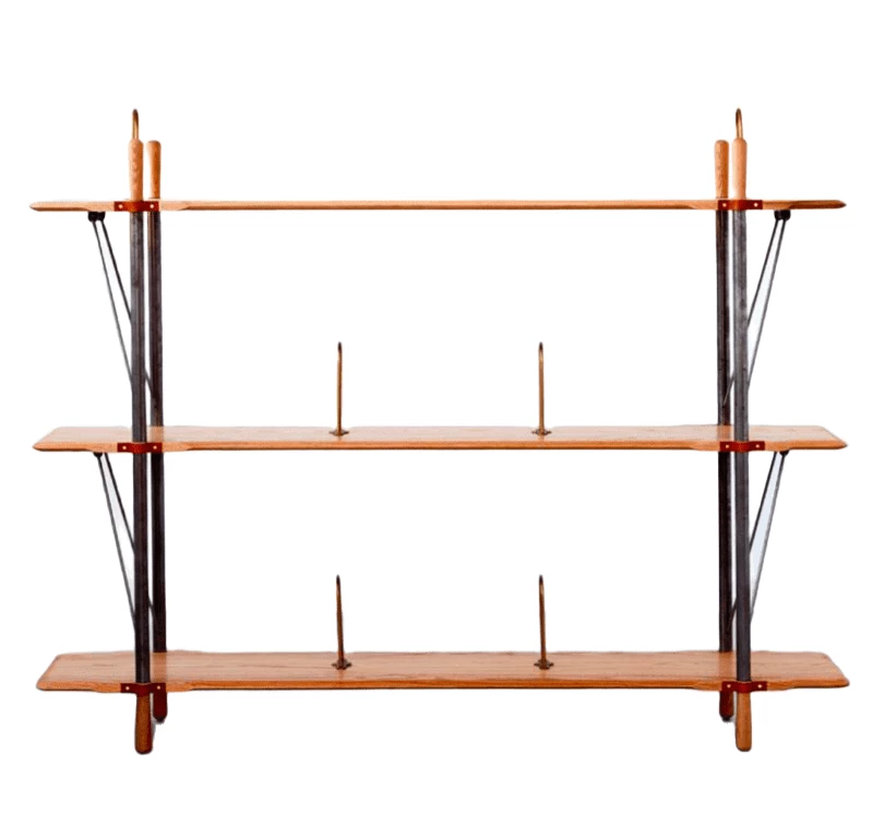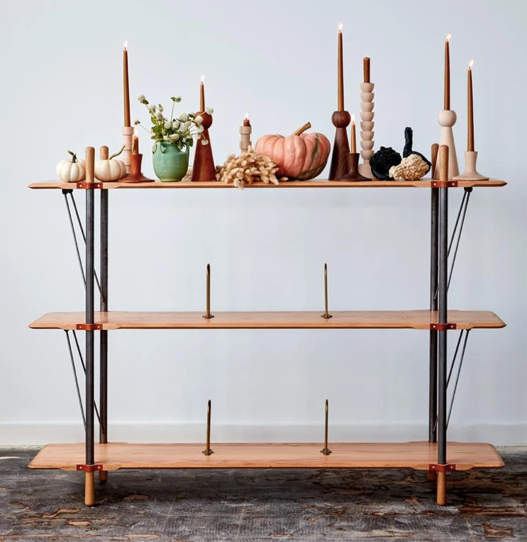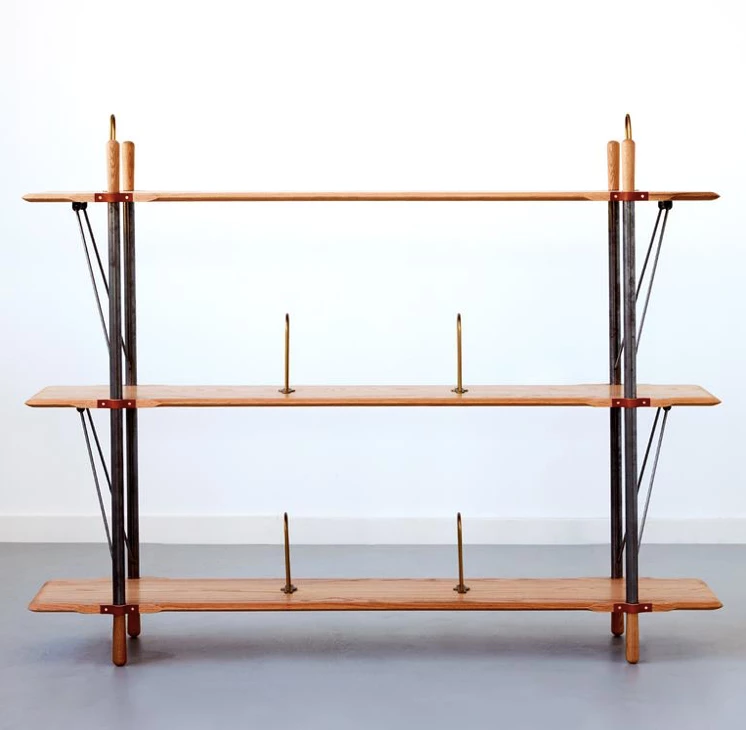 The Brandywine Low Wide Shelf is freestanding unit with solid oak wooden shelves and powder coated steel framing. The shelves are all 12.5″ deep making them perfect for the average size dinner plate or a hefty art book. The shelf has been updated so that it can be more easily assembled and taken apart to move it if necessary. This unit can be placed in the middle of a room as there is no true front or back, a plus if you would like to use this as a room divider in an office space.