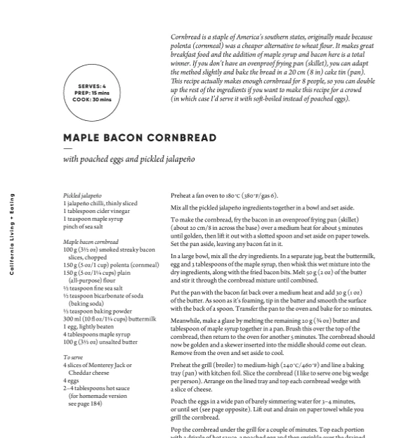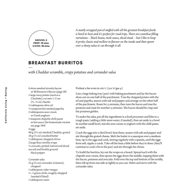 Over 80 recipes capture the heart of the Californian spirit, with chapters covering a bright array of sweet and savory brunch dishes including Whipped Ricotta on Toast with Blackberry Jam and Breakfast Burritos with Cheddar Scramble and Coriander Salsa. Colorful salads and light meals, such as Salmon, Citrus Kale and Black Rice Salad, are ideal for everyday eating, while the likes of Roast Chicken with Grapes, Onions and Sourdough, followed by stunning Cherry and Almond Galette are perfect for weekend entertaining. Recipes are designed to be accessible to all home cooks, with a focus on seasonality and good-quality produce.