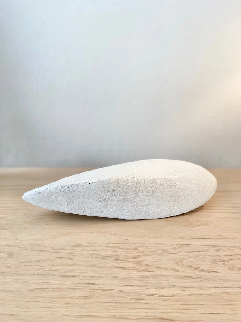 Stoneware with matte white crackle finish. Handmade and one-of-a-kind.