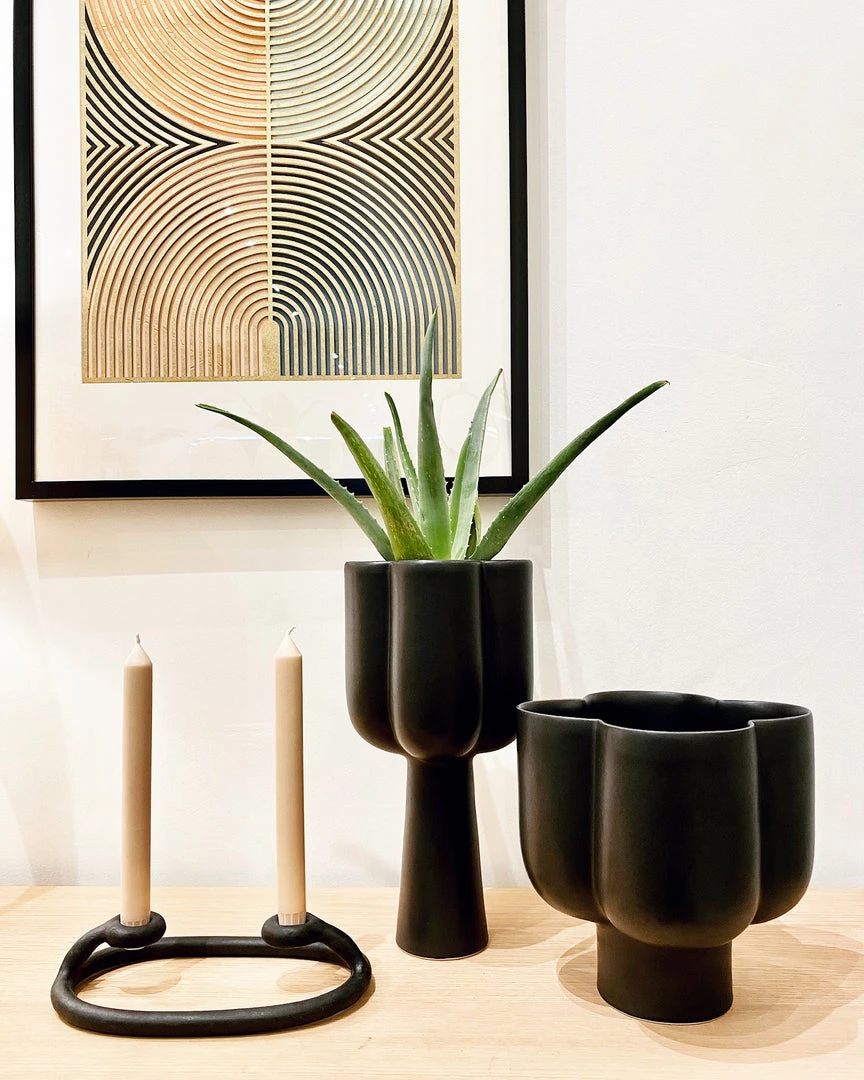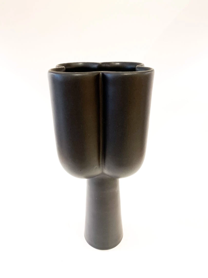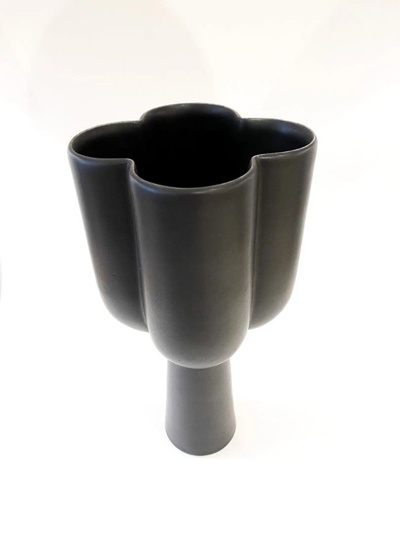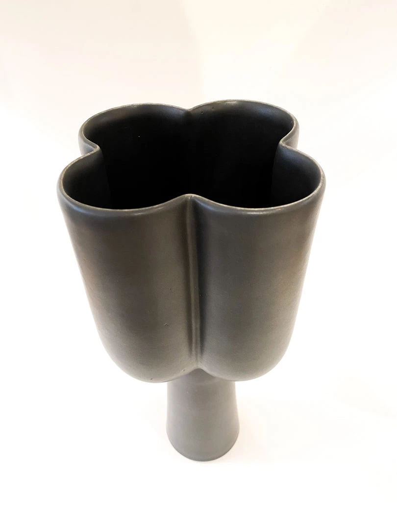 The quatrefoil vase is made in the style of a four leaf clover. Made of high fired porcelain, this wide mouthed vase will handle a ton of flowers or even a plant. Handmade in NYC by Klein Reid.