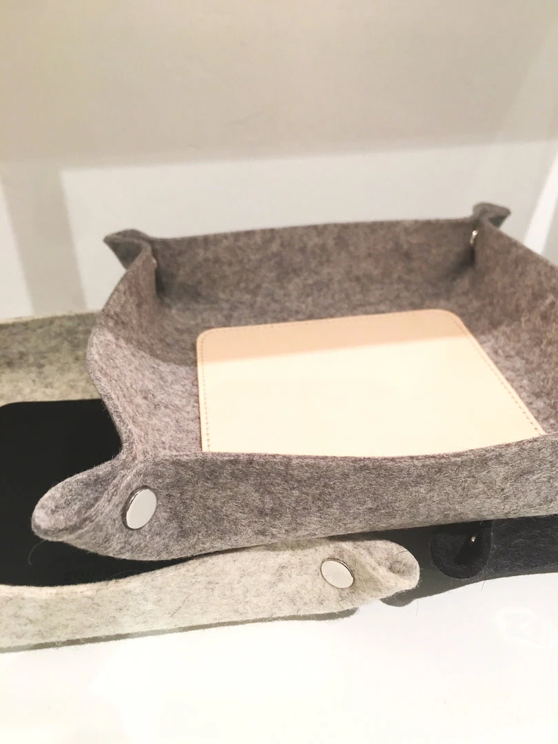 MATERIALS: Merino wool felt, vegetable tanned leather