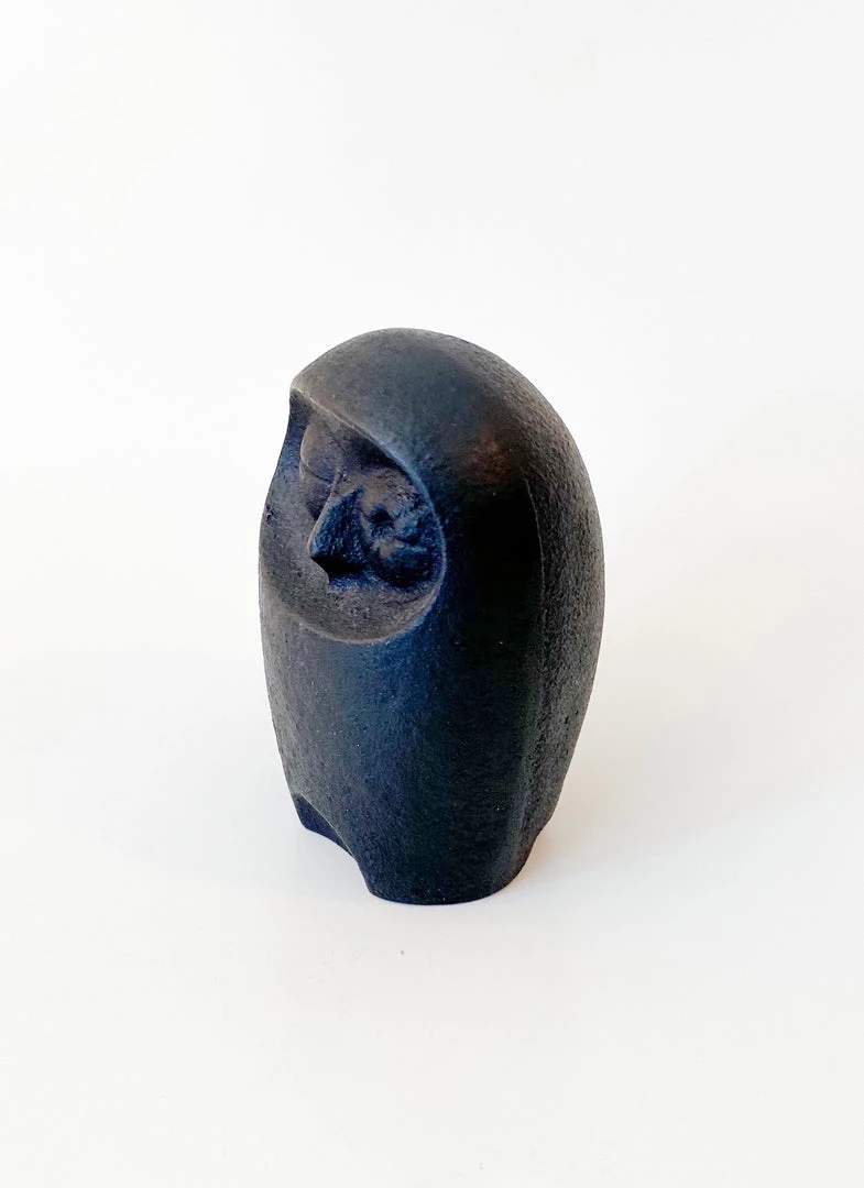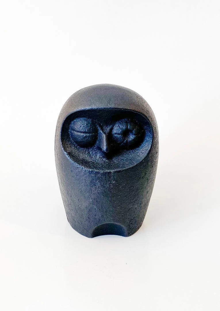 Cast iron Mimizuku winking owl ornament for use as a paperweight or display item.