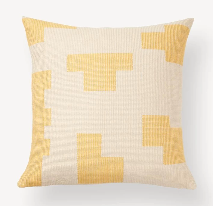 The Puzzle Pillow in Lemon is the perfect fit for your bed or couch. Mix and match with bold patterns or keep it simple with a neutral background. Woven on a backstrap loom by a women run co-op in Chiapas, Mexico.Â