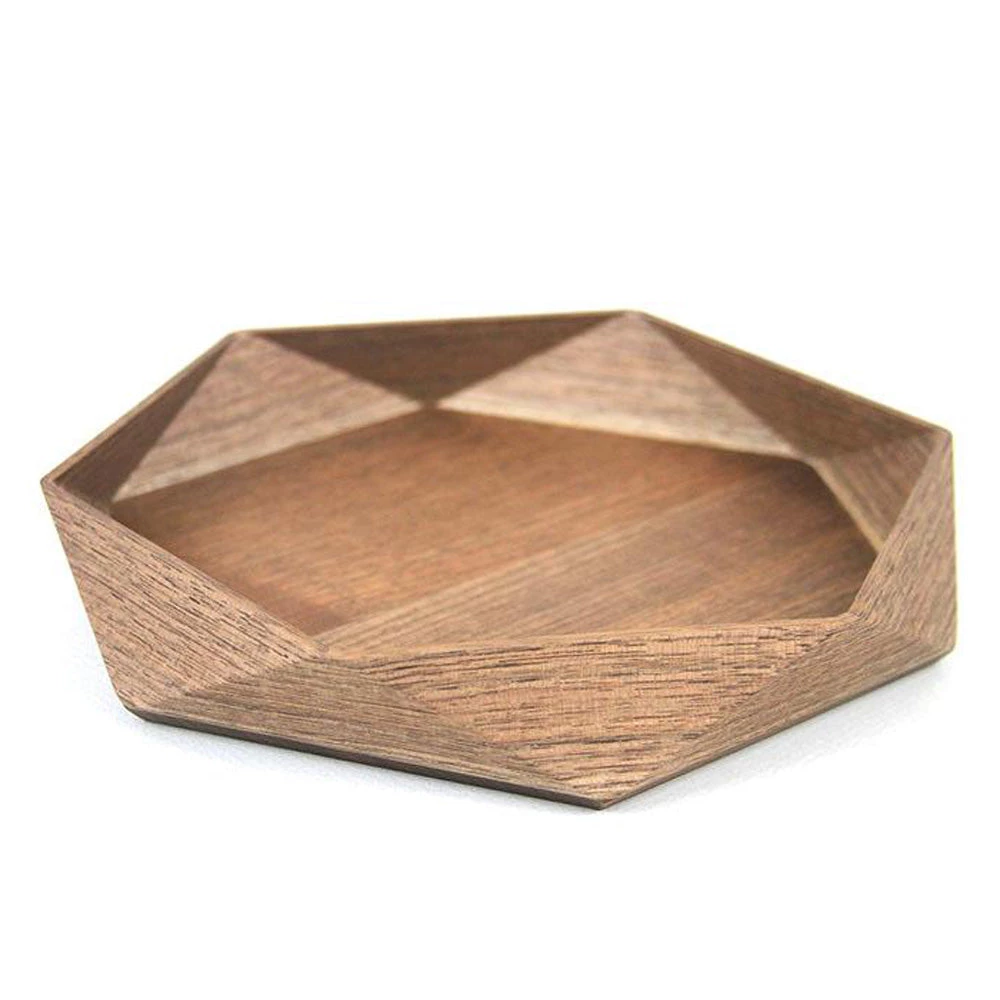 Made from one flat piece of walnut, this faceted tray is cut and glued with precision into a beautiful form. The clean edges are off-set by the organic natural wood. Perfect as a key drop at an entry table or dressing table.
