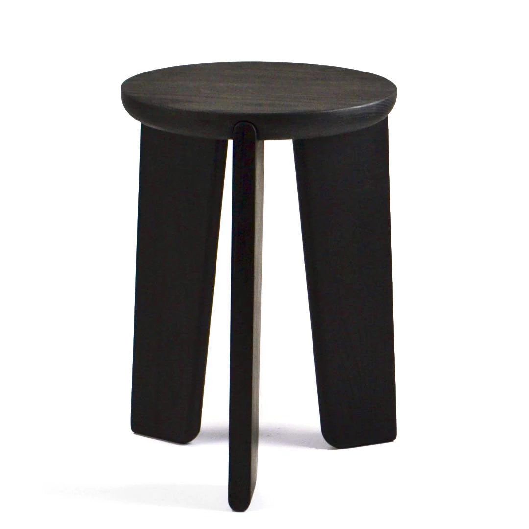 The Fin Stool features beautifully tapered fin-like solid wood legs joined to the seat with clever half circle joints. The design gives this stool a simple but unique, sculptural quality. The Fin Stool can be used as a convenient small table in any room of your home. Made in California.
