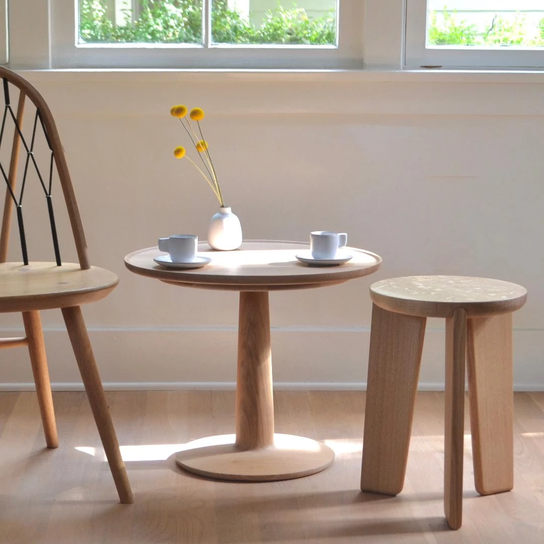 The Fin Stool features beautifully tapered fin-like solid wood legs joined to the seat with clever half circle joints. The design gives this stool a simple but unique, sculptural quality. The Fin Stool can be used as a convenient small table in any room of your home. Made in California.