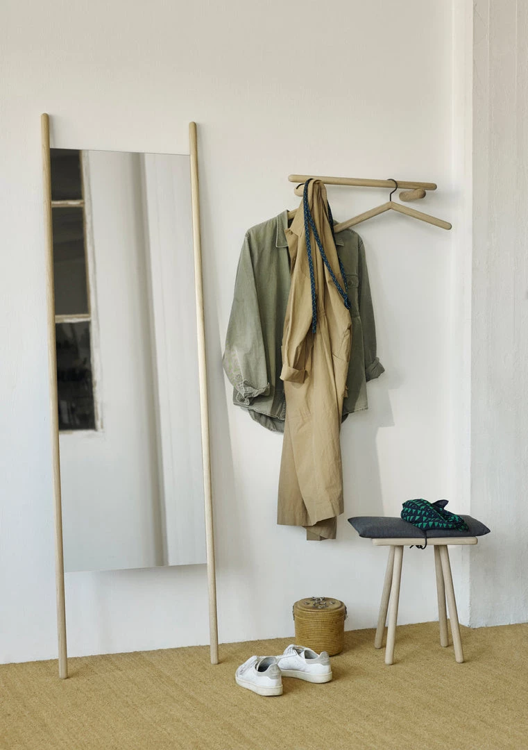 The two-legged Georg mirror leaning comfortably up against the wall – designed from an inspiring meeting between Nordic sensuality and Japanese minimalism.