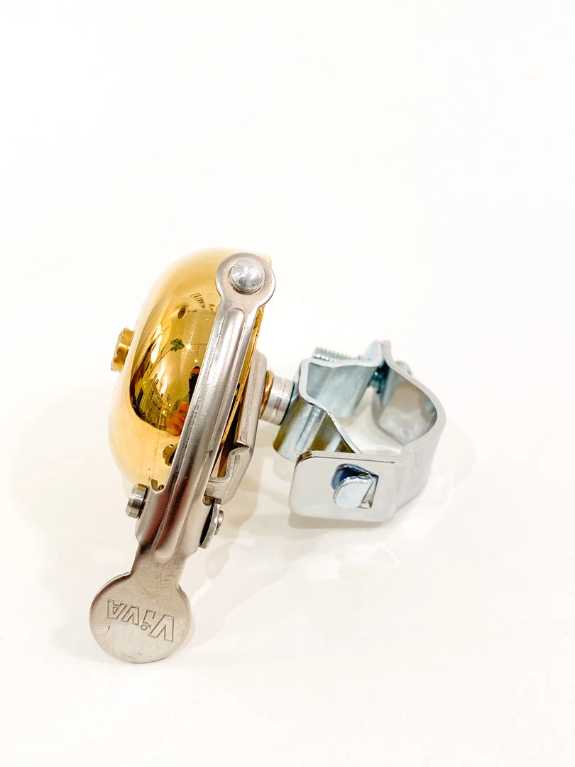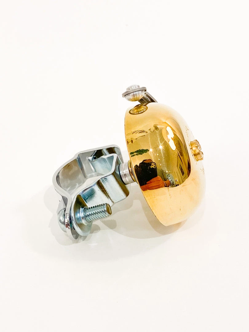 High quality brass bell for your bicycle. The stainless steel connector fits all standard handle bars. Has a pleasant yet high pitch to warn on coming traffic or notify friends you’ve arrived.Â