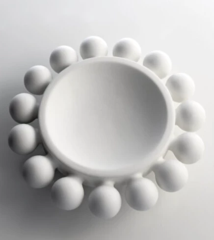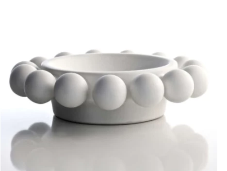 Halo Bowl – Cloud-like, hand appliquéd, porcelain vessels make at bold statement. Our Halo Bowl is perfect for entry table, coffee table, or as a dining table centerpiece.
