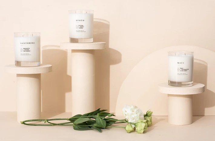 Our Escapist collection takes you to our favorite places in the world, places we’ve traveled to that have a permanent place in our olfactory memories. Double-wicked and housed in white textured boxes and screenprinted glass tumblers, this collection will tug at the heartstrings of minimalists around the world.