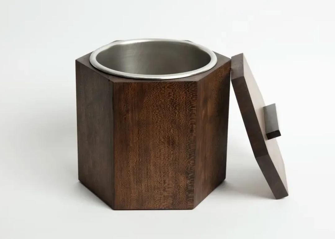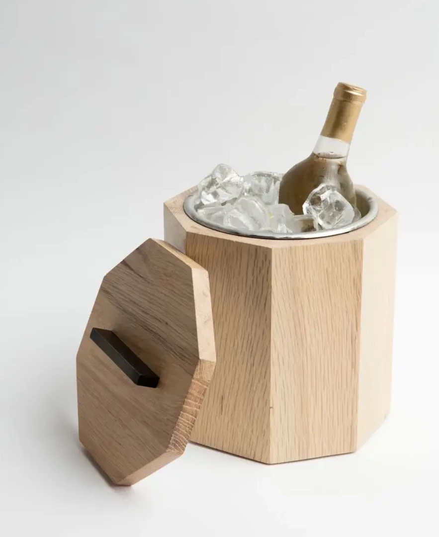 Crafted of rift cut white oak or cherry from Birmingham’s urban forest into a geometric volume. With an American-made stainless steel insert, it’s the perfect home for a crucial element to a cocktail, or a place to keep a bottle of your favorite white wine cool and crisp for maximum enjoyment. Wood and grain colors will vary.