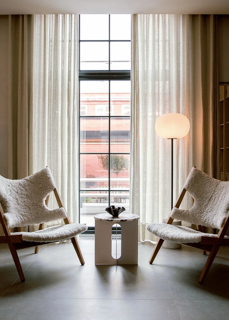 The Knitting Chair is beautiful from every angle, making it easy to place anywhere in a room. Given the chair’s enveloping comfort, it has a relatively small footprint, which makes it an easy fit in compact interiors as well as in more spacious ones. The design also stands out on comfort – the result of Kofod-Larsen’s constant care to ensure ideal angles and lumbar support. The clean, sculptural lines – achieved through the designer’s close work with joiners – and the high-end, natural materials make for an unforgettable, conversation-sparking silhouette.