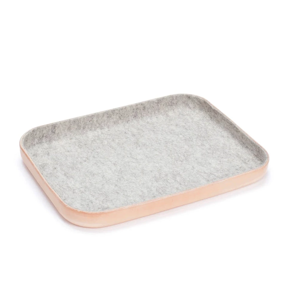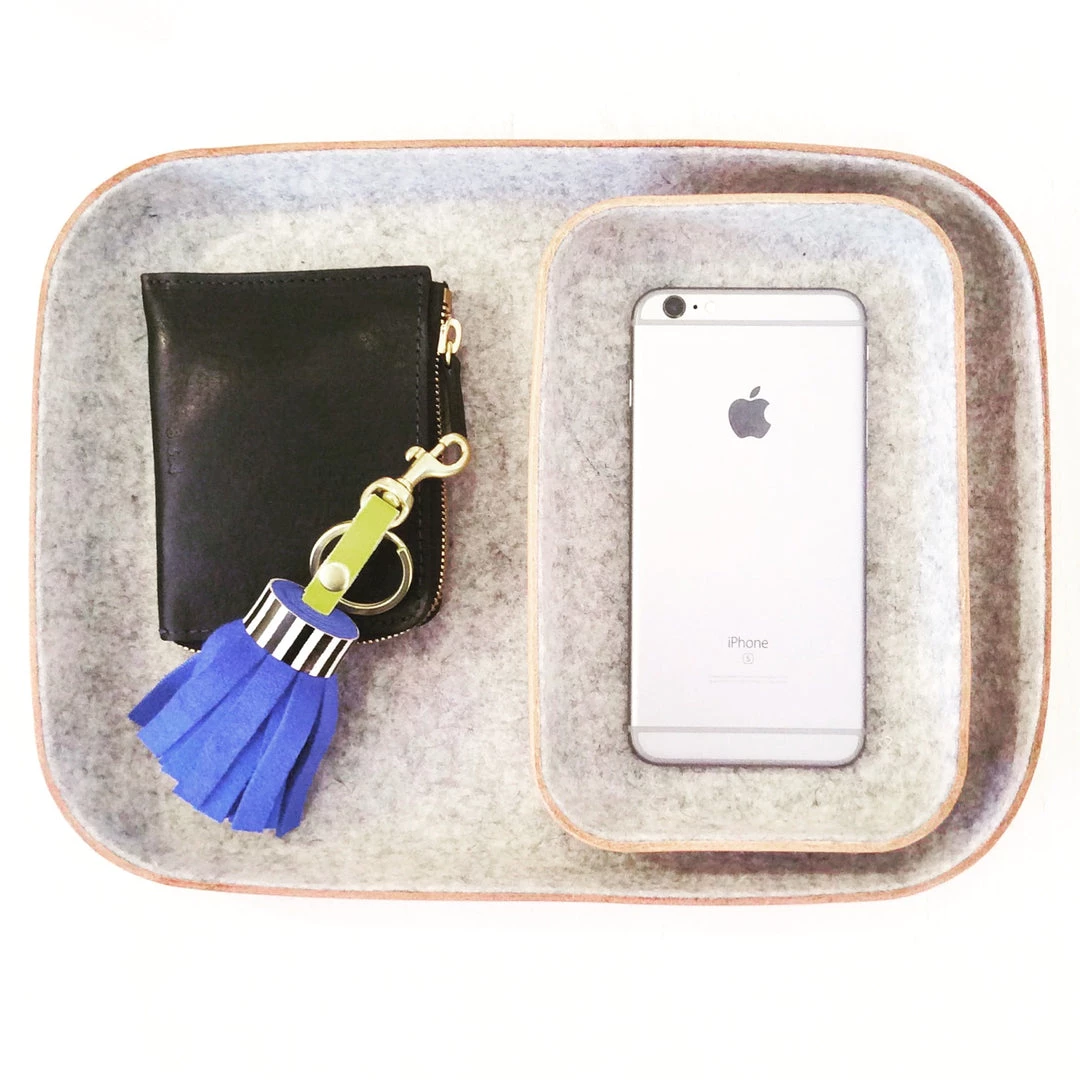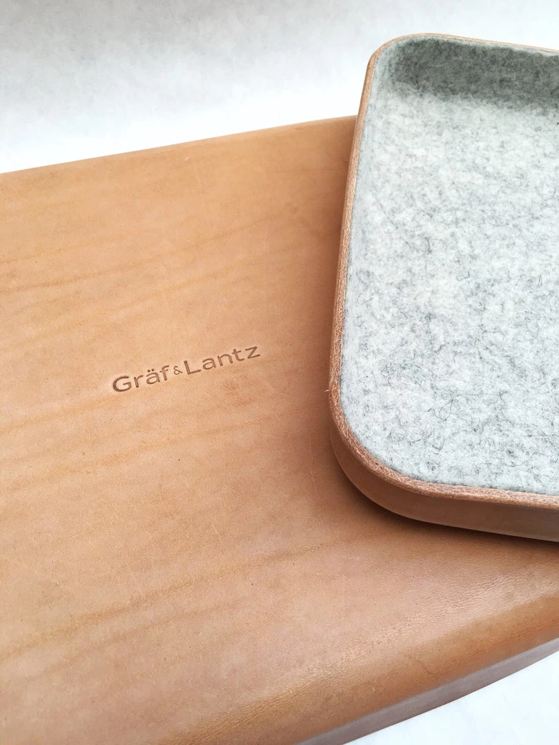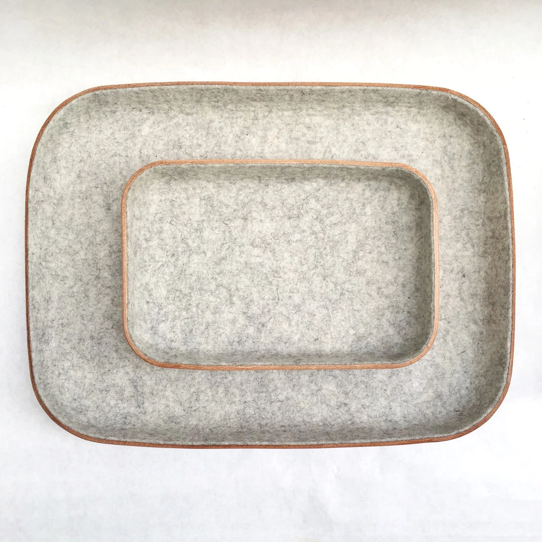 Bonded German merino wool felt and Italian leather tray molded into an innovative and covetable home accessory. Organic form and simple style created for unlimited home organization and display. Made in USA.