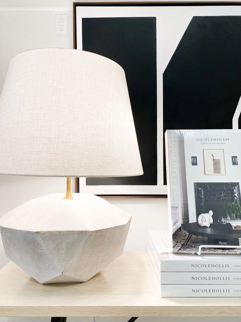 Available in five finishes. Includes a white or black linen shade.