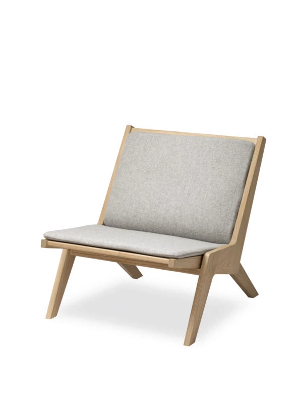 With its classic and clean look, the Miskito Lounge Chair is inspired by Middle American aesthetics and craftsmanship. The cushion, held in place behind the backrest, adds a soft touch. This chair is foldable, so you can easily bring it with you outside when the weather allows. Designed by Herman Studio / Skagerak Denmark.