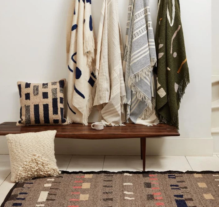 The Moon pillows are knit using ultra-soft merino yarns and feature a half moon of loopy texture. Minimalist and easy to incorporate into any room. Handmade by a women’s cooperative in Uruguay.