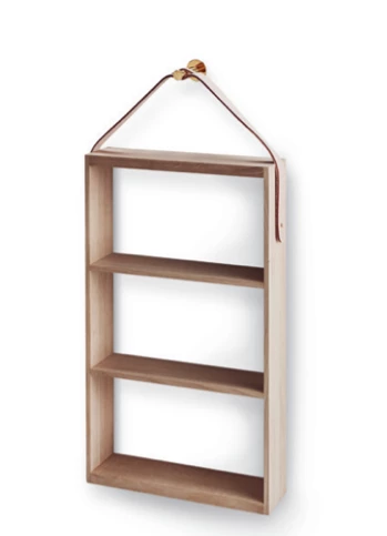 For knick-knacks, vases or perhaps a little collection of something unique and personal. Norr Shelf is the square interpretation of the pyramid shelf. Here, the triangular space is defined by the leather strap hanging from an elegant brass-mount.Â