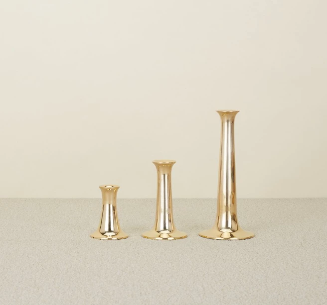The Simple Candle Holder line is an exercise in restraint. Inspired by both early American + Modernist purist design, these candlesticks are simply elegant. Their weight is substantial and they offer a stunning finish to any room. Perfect for any gathering, having multiples of these on the table will set the mood for a great time. Each comes shipped with a dust bag for safekeeping.