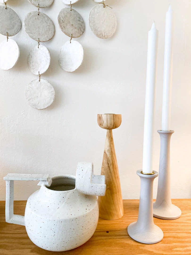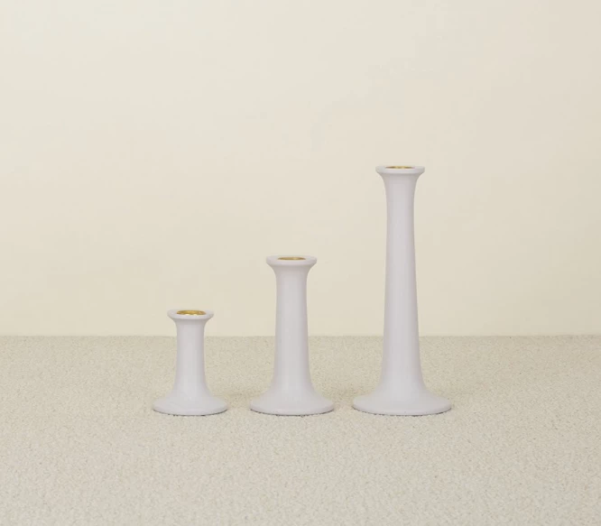 Inspired by industrial smoke stacks, the Simple Wood Candle Holders are turned from solid ash and then stained. Each holder comes with a gold finish candle cup for easy cleaning. We love these mixed together or with the other colors in the collection. An easy update to your table or mantle!