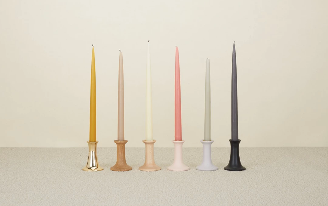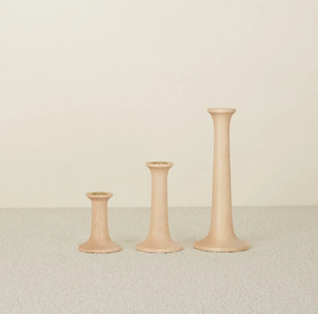 Inspired by industrial smoke stacks, the Simple Candle Holders are turned from solid maple. Each holder comes with a gold finish candle cup for easy cleaning. They look great side-by-side with our blush and brass versions.Â