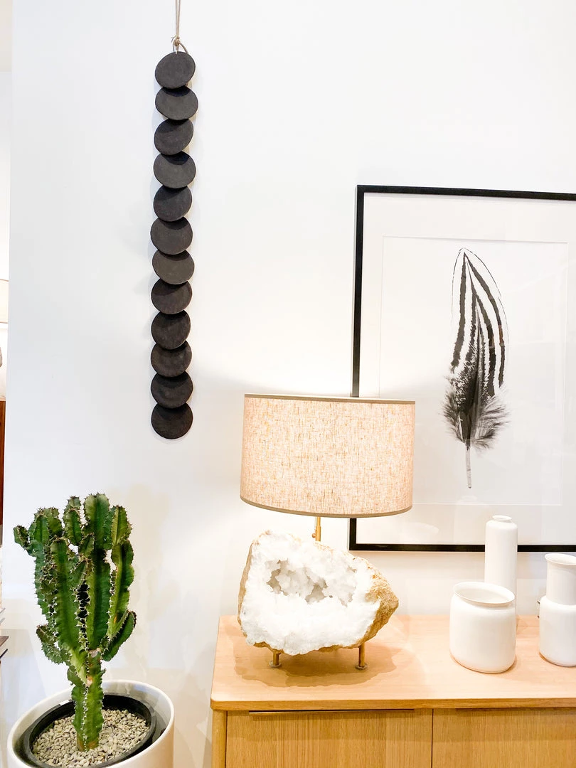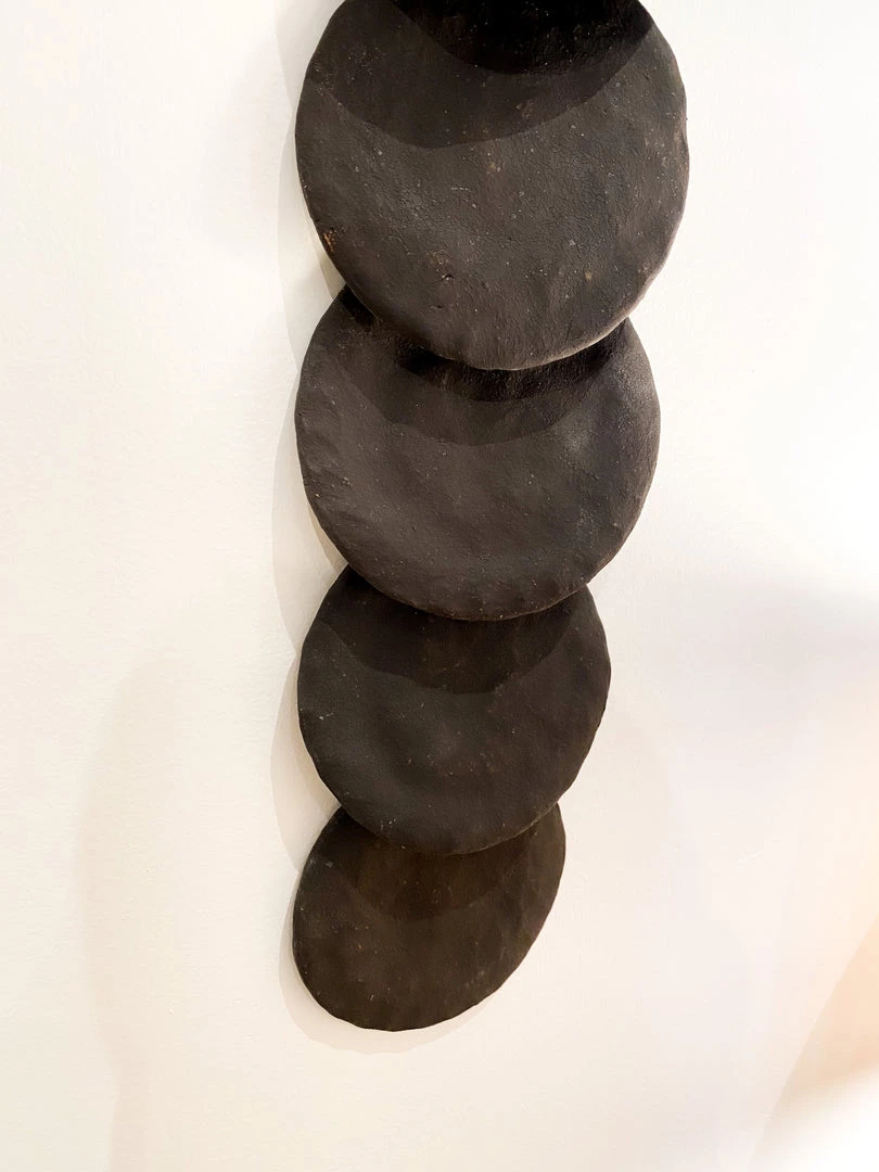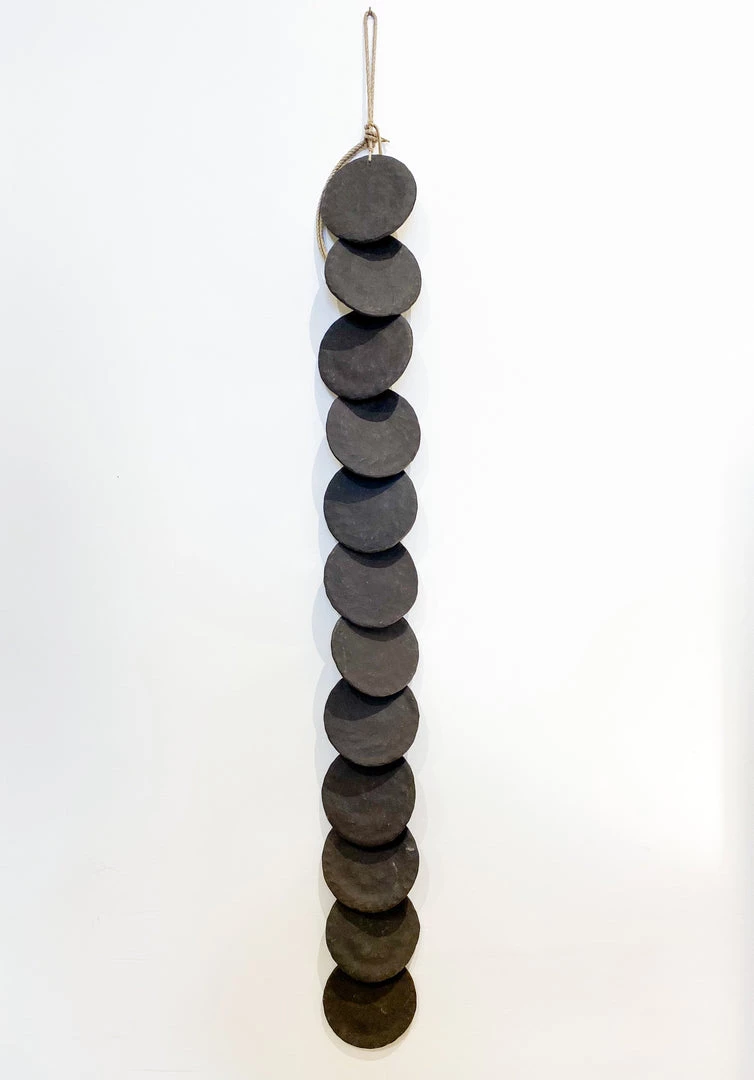 Handmade by MQuan Studio, strand of ceramic discs. Knotted by hand, each single strand varies in length between 34-37″. Perfect for narrow spaces and look great layered with multiple strands. Â