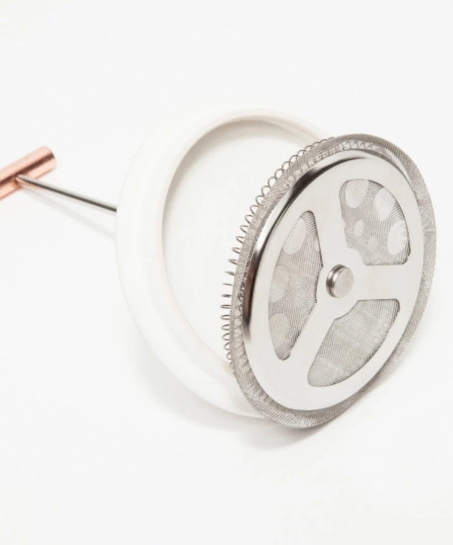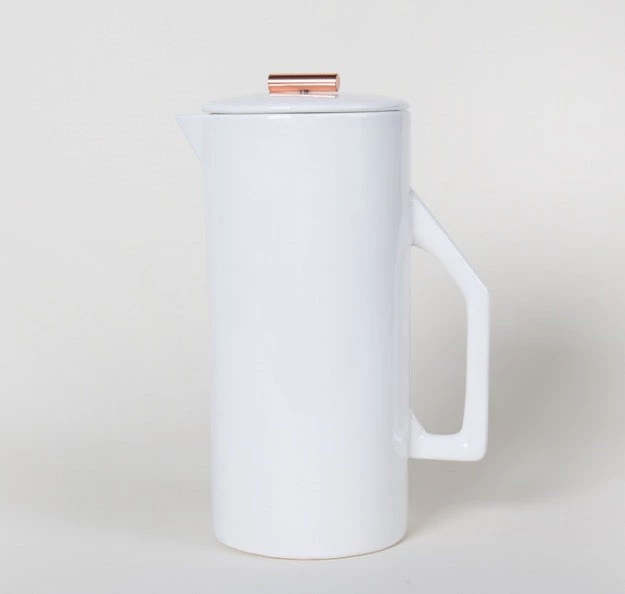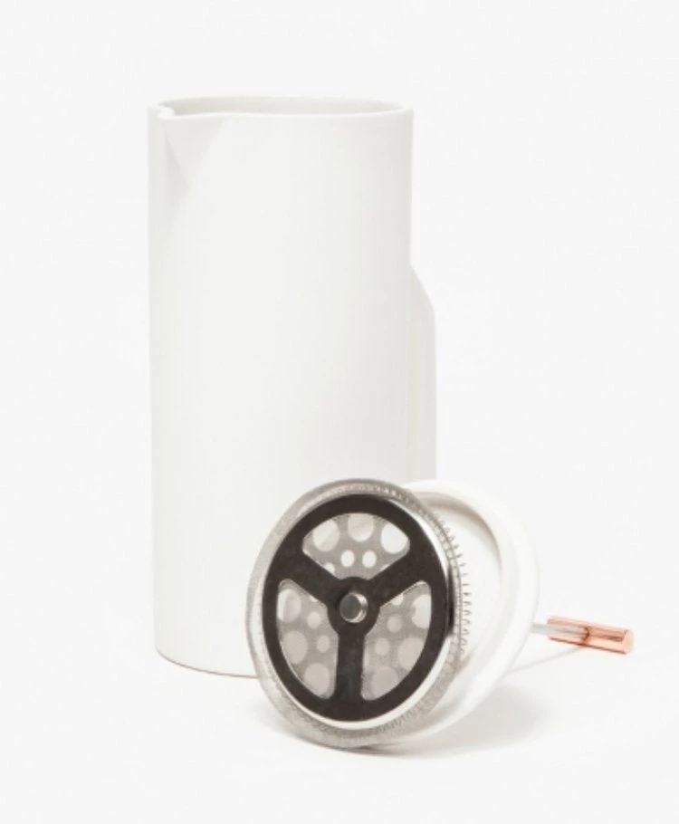 Brew perfect, full-bodied coffee in the traditional French press method. This heavy walled ceramic press pot is a functional and beautiful addition to your kitchen table. The ceramic body maintains a consistent temperature throughout the brewing process. High gloss interior finish. Certified SGS Food Safe. Available in Matte Grey or Cream Gloss colors/finish.