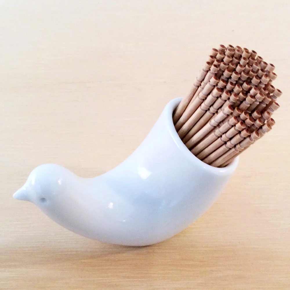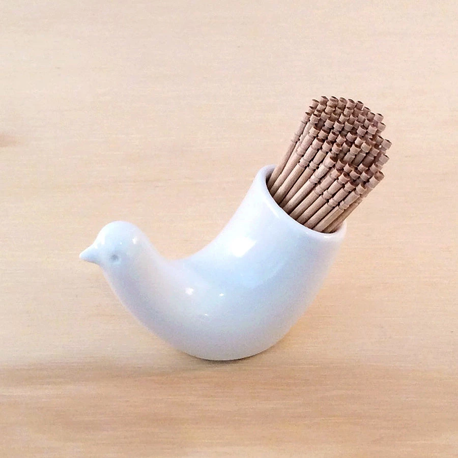 Pretty porcelain TOTTO bird designed in the 1960’s by Japanese designer Masahiro Mori for Hakusan Porcelain. Hakusan Porcelain Co. has been making quality porcelain tableware for eight generations in Hasami, a traditional pottery town of Nagasaki. Can be used as a small bud vase or decorative accent. Made in Japan.