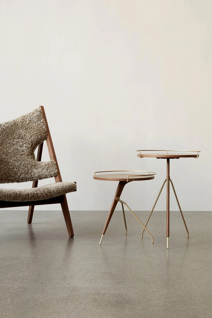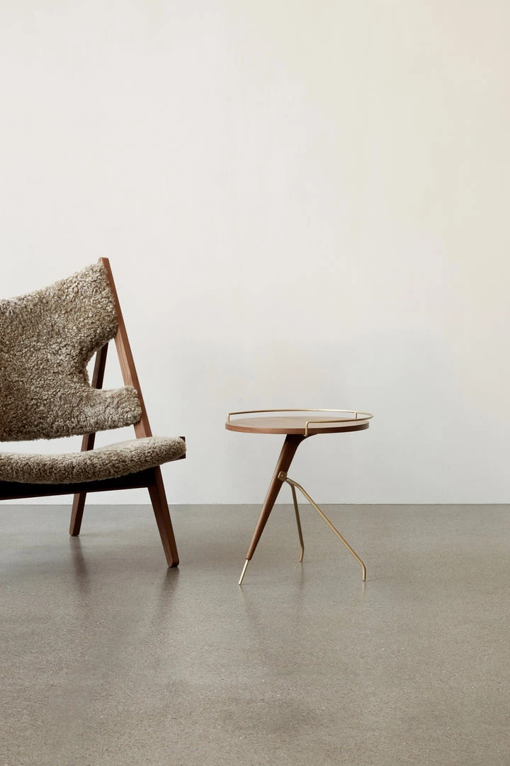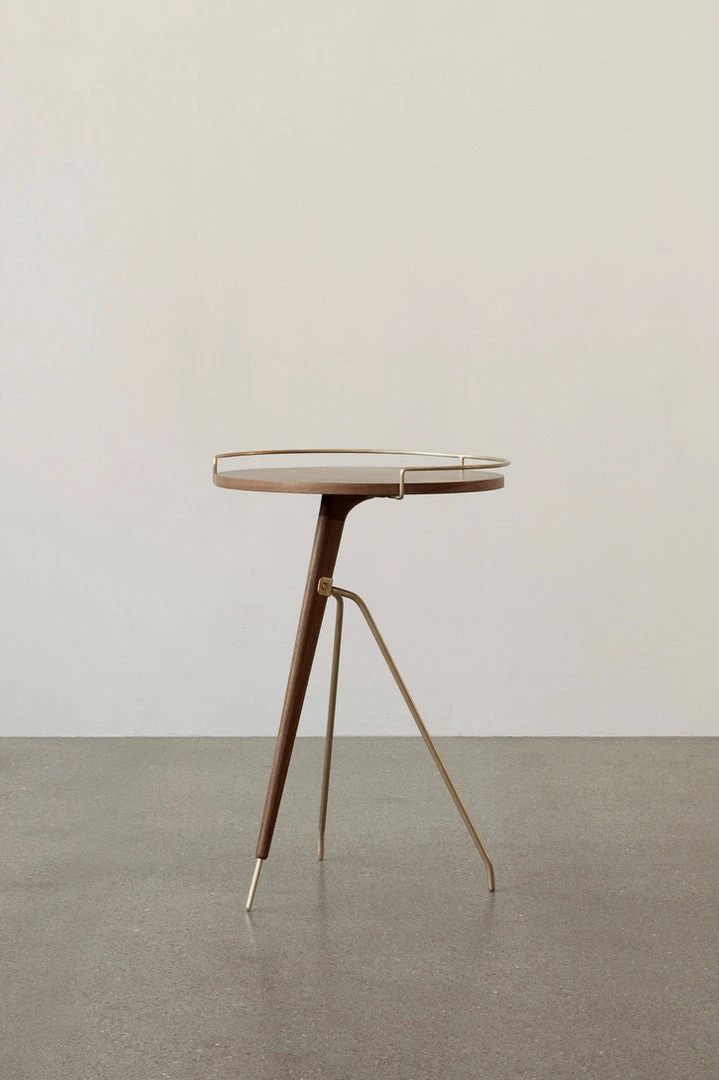 As relevant today as it was when first designed by Arthur Umanoff in the 1950s, the authentic reissued Umanoff Side Table balances walnut and brass on its rounded top and tripod inspired frame to create a table that challenges convention.
